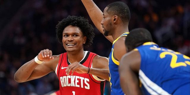因为阿门身高长到2.03米了,六尺八寸的体型。说句实话,如果阿门有三分能力,在23年他都能和文班亚马竞争状元,他硬件能力比肩詹姆斯。就是没有三分,米勒和亨德森才力压阿门进前三。上赛季阿门每百回合限制对手命中率联盟第一强,杜兰特是第二。火箭在上赛季的基础上引进杜兰特,等于拥有2个联盟顶级防守者,一个杜兰特就能代替杰伦格林和狄龙的价值了,更别提火箭还有奥科吉,电风扇和卡佩拉三大新援。