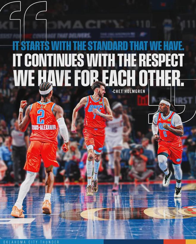 同时,霍姆格伦场均干扰篮下出手4.8次,限制对手命中率50.5%,护筐效率联盟第八,雷霆是联盟唯一拥有两位护筐效率前十球员的球队。