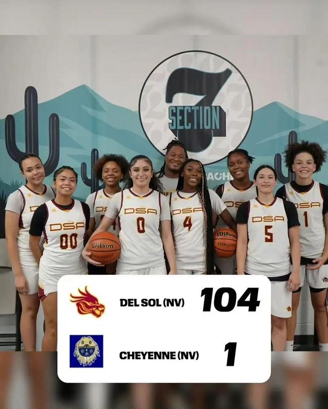 在拉斯维加斯当地的一场女子美高比赛当中,Del Sol高中以104-1击败Cheyenne高中!Cheyenne只在第一节拿到了1分,其他三节都挂零,最终创造了这个篮球世界里最离谱,最夸张,连2K游戏都很难模拟出的奇葩比分。
