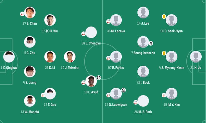 前锋:72-白寅优、36-马蒂亚斯·拉卡瓦(65'18-许栗)、97-埃里克·法里亚斯(65'11-严元相)