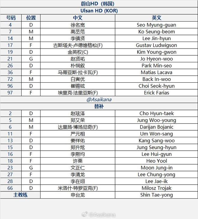 3外援对决!申花蔚山首发出炉,中超旧将马尔康缺席,金英权队长