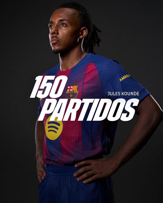 孔德也成为巴萨队史第四位达成这一里程碑的法国球员,前三位分别是朗格莱(160次)、登贝莱(185次)和阿比达尔(193次)。