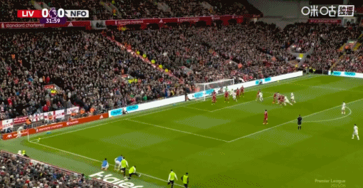 第33分钟,森林开出角球,穆里略抽射破门!利物浦0-1落后!