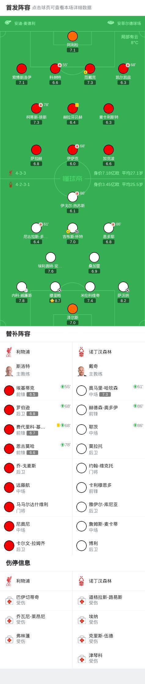 剑南春丨利物浦0-3森林近7轮联赛6负,穆里略、萨沃纳破门