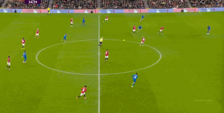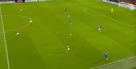 这几次防守,随着中场区域的常规掉线,后卫线开始感受到了压力,这是343体系本该最为强悍的地方,到了他们该顶上来的时候了,但这刚好是曼联最为薄弱的地方。