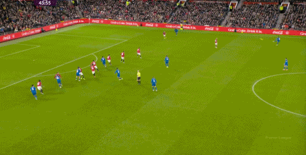 不过,伯恩茅斯的进攻开始上线,防守不会因此明显改善,所以你会发现,在伤停补时阶段,卢克-肖这次前插非常有效,伯恩茅斯根本不知道如何防他: