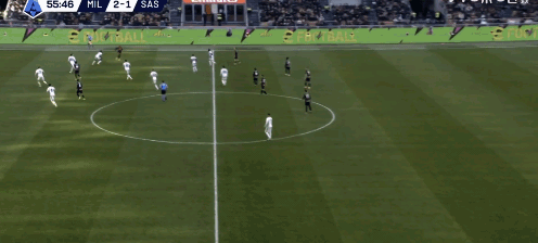 ↑33:15,边路萨勒马克尔斯和托莫里把萨索洛的防守吸引在边路,莫德里奇的前移接球就让本来负责盯防齐克的坎德处于顾此失彼的状态(索斯特维德没有及时横移)。利用魔笛的传球以及齐克这一点在肋部的接应,就打穿了萨索洛整条防线的布置,随后的事大家就都知道了。