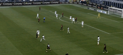 ↑第10分钟,美队边路传中,恩昆库占据一点,奇克在禁区线的二点位置,但恩昆库选择往后点走没有给后卫压力,让萨索路中卫在前点轻松解围。