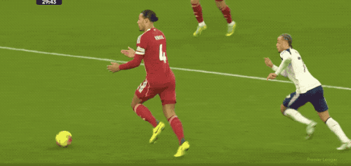 第30分钟,西蒙斯背后出脚,踩在了范迪克的跟腱上,顺势又将自己的荷兰国家队队友放倒,裁判立即向西蒙斯出示黄牌。